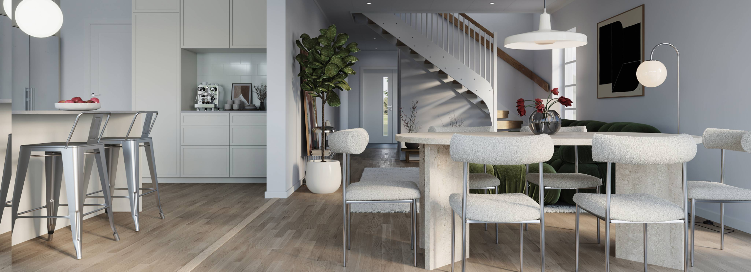 Genom att bygga i trä skapar vi inte bara ett klimatsmartare hus – vi skapar också ett hem med en varm, behaglig och naturlig känsla. Ett material som andas, lever och står stadigt över tid.